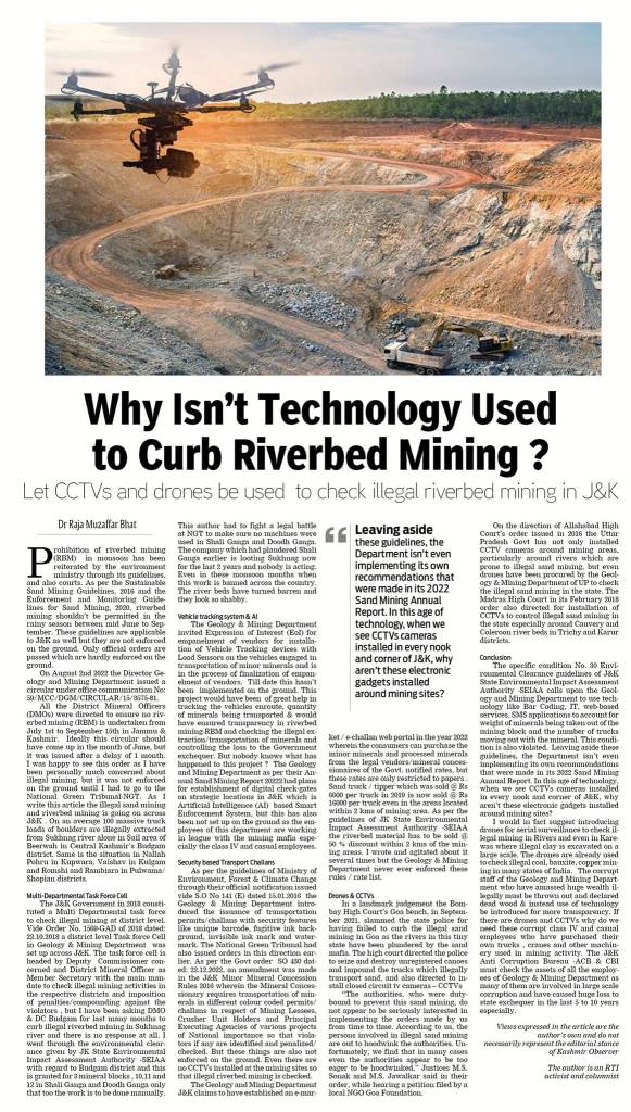 I think, if used properly the use of technology like installation CCTVs and using drones around mining sites can be helpful in curbing the illegal mining menace. I have written in detail on this aspect: “Why Isn’t Technology Used to Curb Riverbed Mining”.