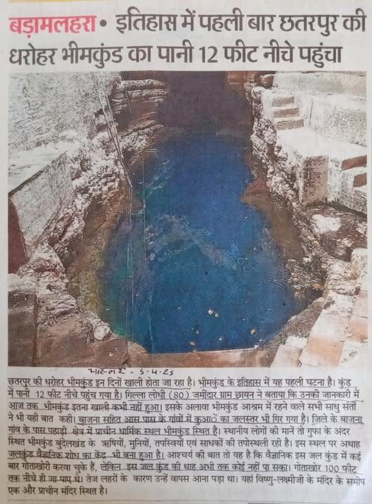 According to this report the Bhimkund reservoir in Chhattarpur district has for the first time in living memory, has gone 12 ft deep.