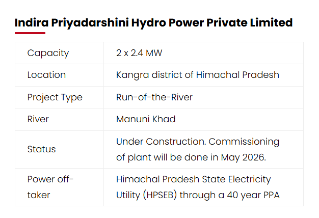 Financial issues: Regarding the debt on company, Insolvency and Bankruptcy Board of India (IBBI) in January 2021 mentioned that the Ministry of New and Renewable Energy (MNRE) had credited the company a sum of ₹2.88 crore out of which the IPHPPL had not admitted the claim of ₹1.31 crore. The IBBI had then remarked that “Total amount of Subsidy disbursed to the Corporate Debtor to the extent of Rs. 1.57 Crores has been admitted. Clarification regarding Interest claim has been sought.” However, in December 2024, India Ratings and Research (Ind-Ra) had withdrawn IIPHPPL’s bank facility rating after receiving a no dues certificate from the lender and withdrawal request from the issuer. As per Ind-Ra, the Indira Priyadarshini Hydro Power is sponsored by the Ind-Barath group of companies.