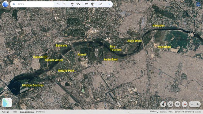 In between, the DDA has added one more project, namely the Kalindi Aviral Extension (163 ha.) in the list increasing the total number to 11 covering more than 1600 ha of O zone of the floodplain. Meanwhile, the first phase of some projects including the Vasudev ghat, Asita East, Asita West (Yamuna Vatika), Vansthali, Amrut Biodiversity Park, Kalindi Aviral Extension (Bansera) were completed in the past two years.