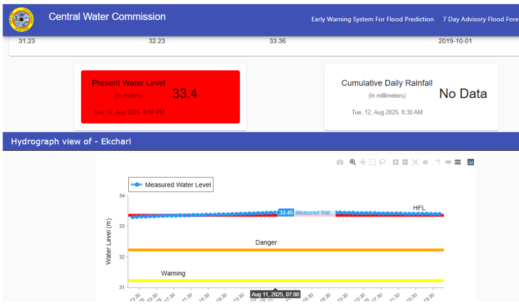| 2 | Kuthibari/ Icchamati | N24 Pargana/ W Bengal | 12.15 m/ 17.09.2024 | 12.26 m/ 08.08.2025 | ~166 hrs |