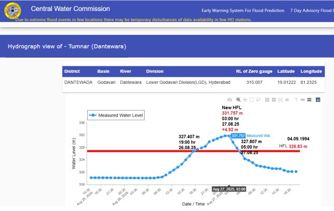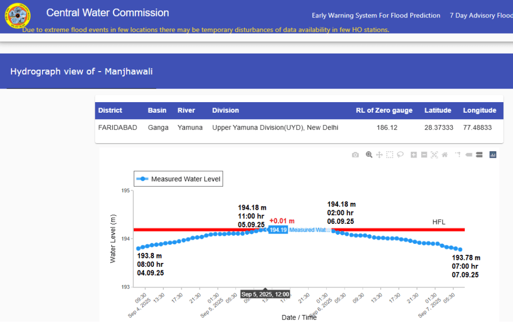 Rivers at 5 sites namely Khanabal on Jhelum, Kuthnaur on Yamuna, Masaurhi on Dhardha, Ichhamati at Bajitpur have crossed old HFL twice in this monsoon season while at 1 site Kuthibari on Icchamati three times in Aug. 2025. Notably, all these sites are part of Ganga river basin.