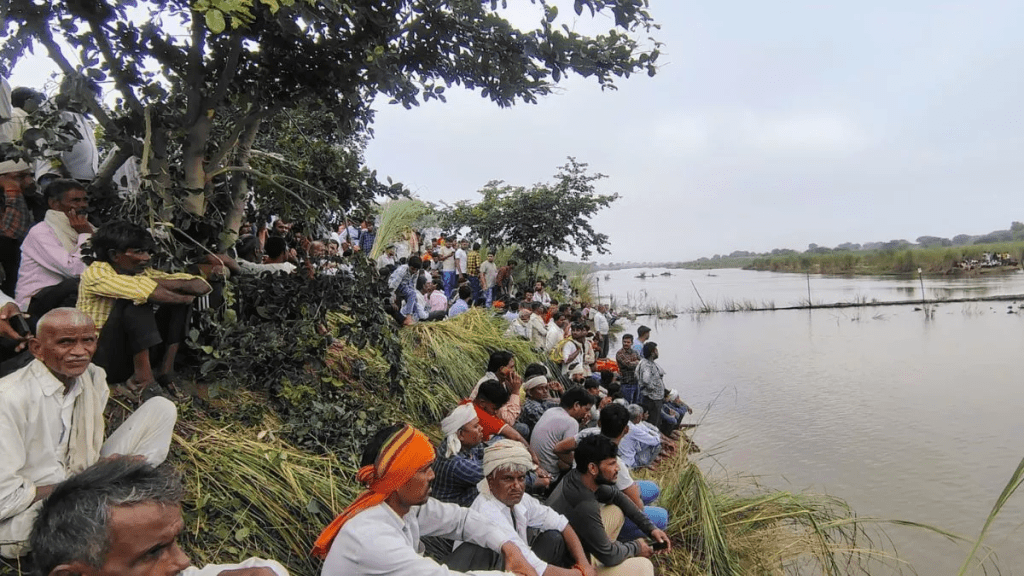 However, other reports mentioned the villagers including kids and women on tractors had first visited the designated site but reportedly found it barricaded and was refused entry by the police. While returning, they planned to visit upstream location which was close to a crematorium site lacking safety arrangements and vigil.