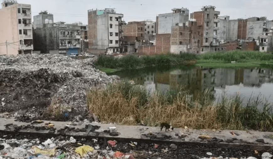 Pond in Naraina turns concrete dumpyard Despite the allocation of Rs 50 cr for the revival of the capital’s water bodies, the depletion and misuse of these bodies remain as rampant as ever. In Naraina village, residents say that a local pond has been systematically destroyed over more than a decade through unchecked construction activities, with full complicity and negligence of authorities.