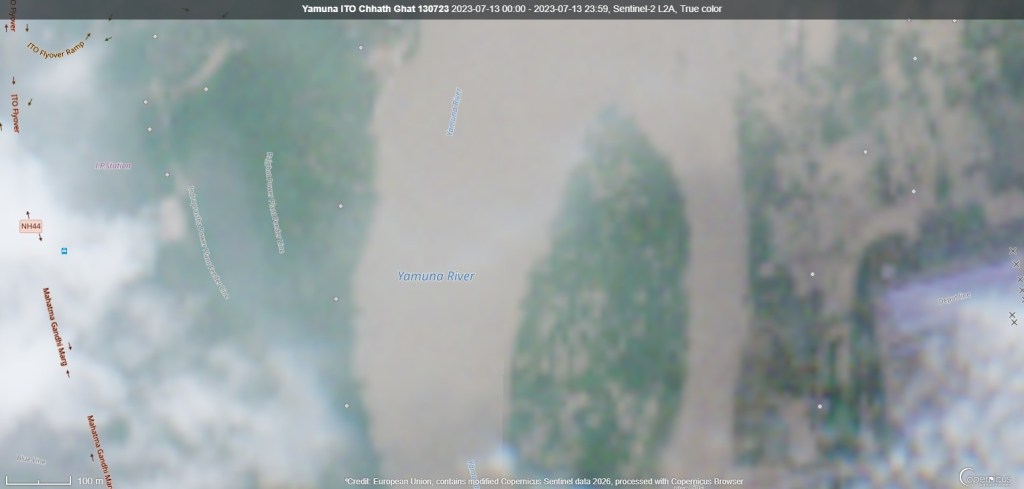 13.07.2023 Copernicus satellite imagery on Yamuna flood at Chhath Ghat, ITO