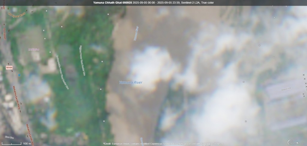 05.09.2025 Copernicus satellite imagery on Yamuna flood at Chhath Ghat, ITO