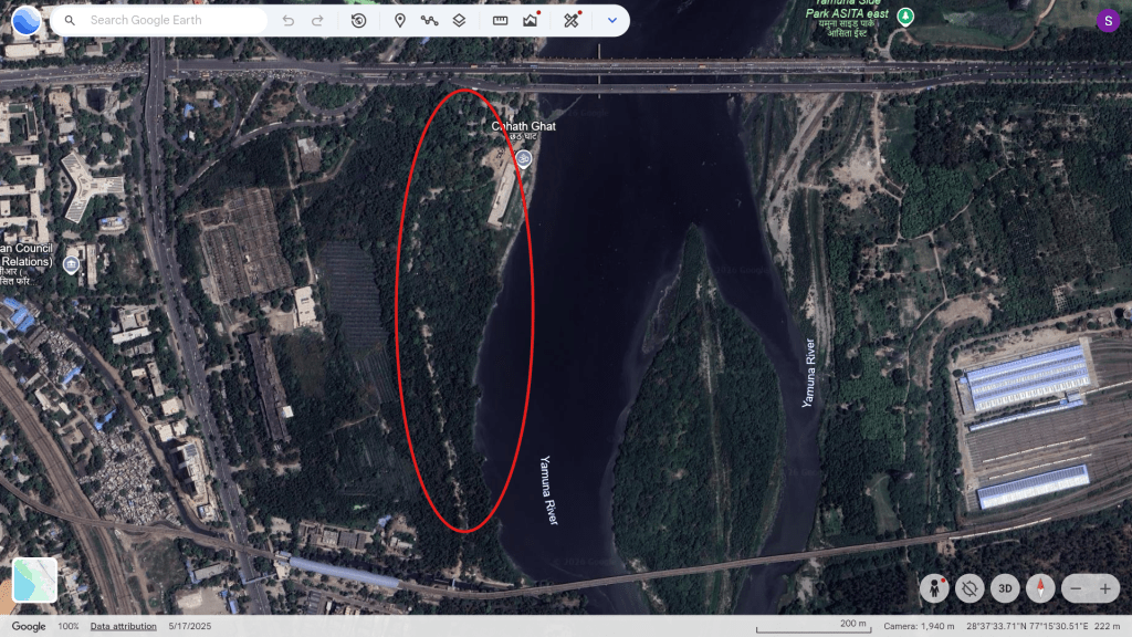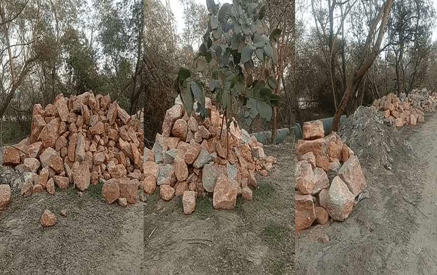 Complaint against damage to Yamuna floodplain forested patch by dumping of concrete debris & rocks at ITO Chhath Ghat, Delhi