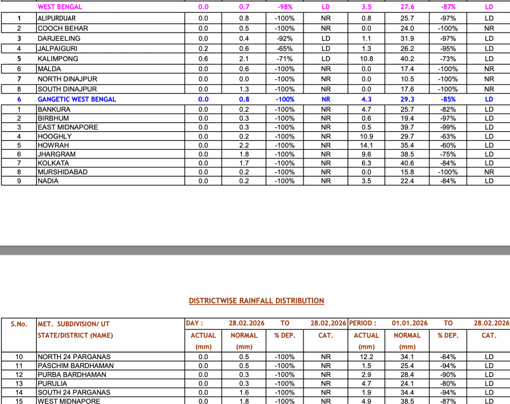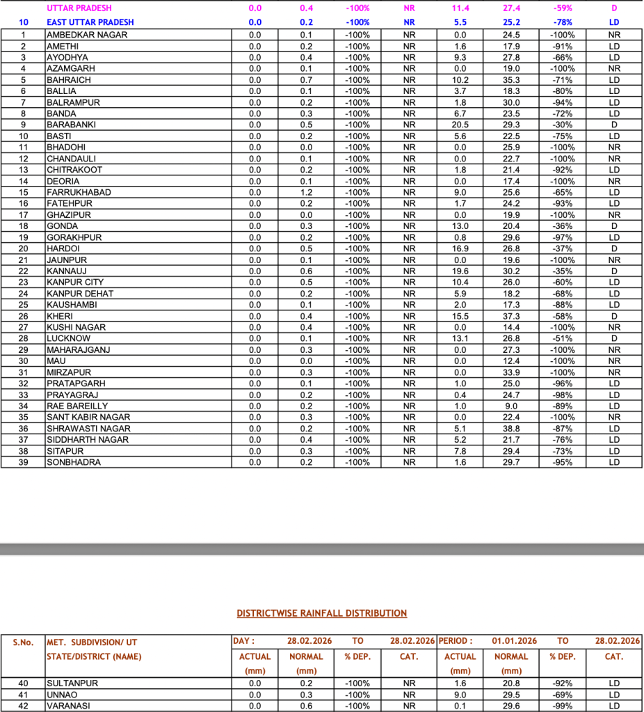 The Normal rainfall in this two-month Winter season is supposed to be quite low at 39.8 mm, but the actual rainfall was 16 mm in winter 2026. In this report we are giving detailed state wise and district wise figures of the rainfall for the 2026 winter season as reported by IMD.