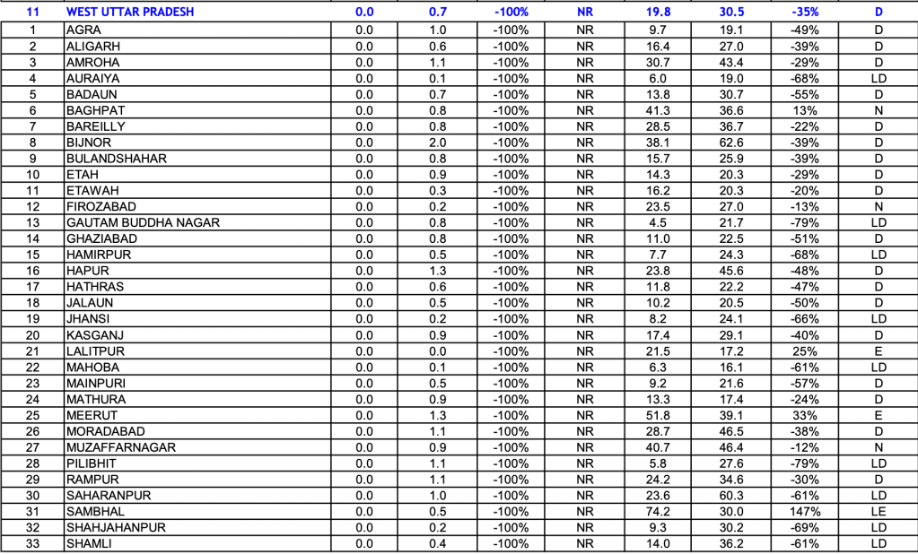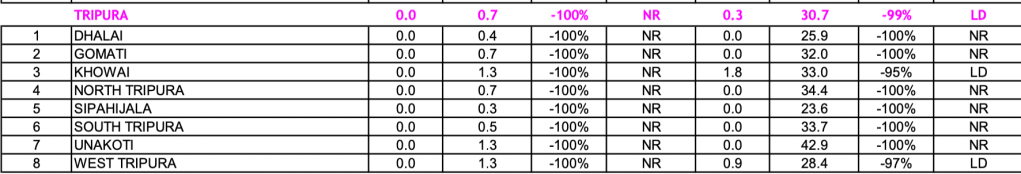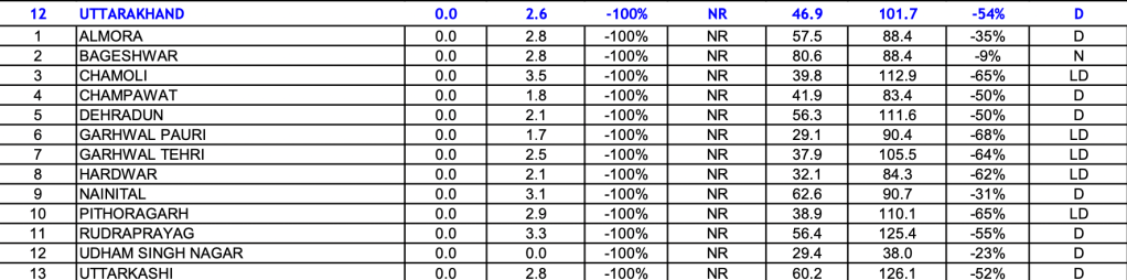 Uttarakhand: Since we could not download IMD map for some states, we are giving tables for district wise rainfall for such states.