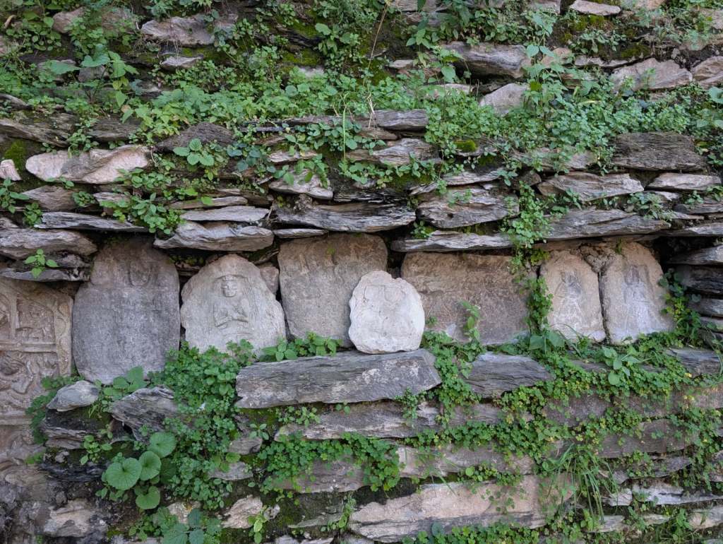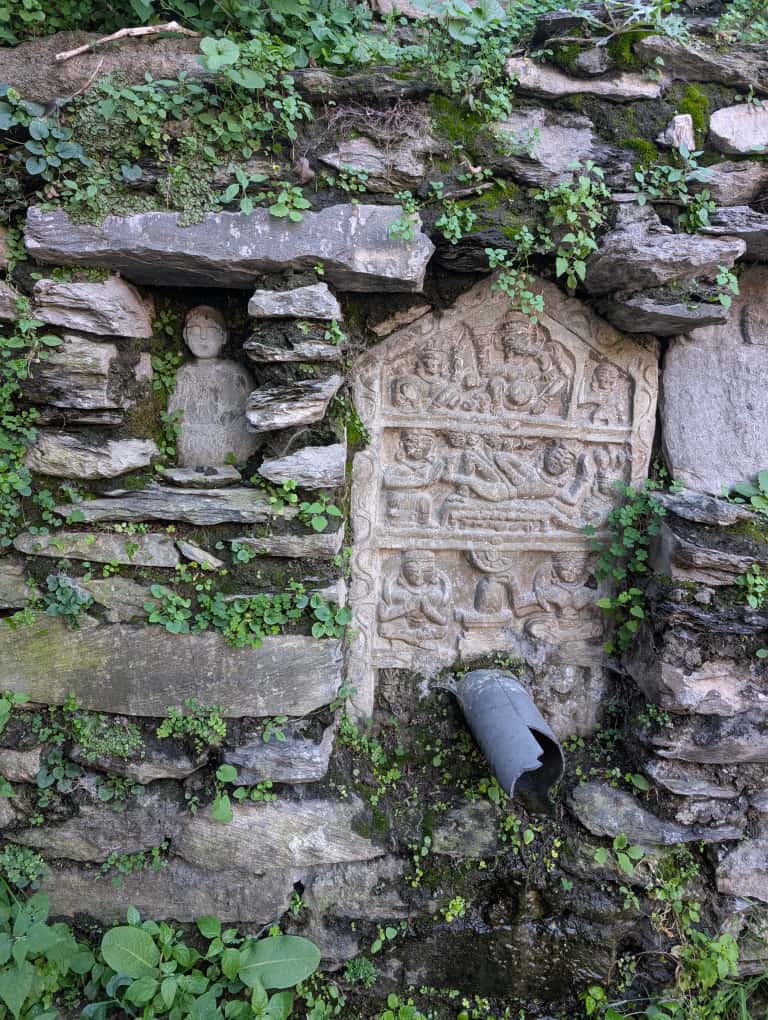 The village is home to multiple groups of beautifully carved spring fountains, panihars (literally meaning holding or carrying water), providing drinking water to more than a thousand people and their livestock. These intricately carved lithic (of the nature of or relating to stones) slabs were installed around the 12th century, consecrating and celebrating the Himalayan springs. Over 800 years old, many of the panihars reclining against fern-green walls are covered in moss and flowering balsam (an aromatic resinous substance, such as balm, exuded by various trees and shrubs). Water trickles from some, while it gushes from others. The entire area hums with the sound of gently flowing water. The place feels rich and luxuriant in the way only a well-watered place can.