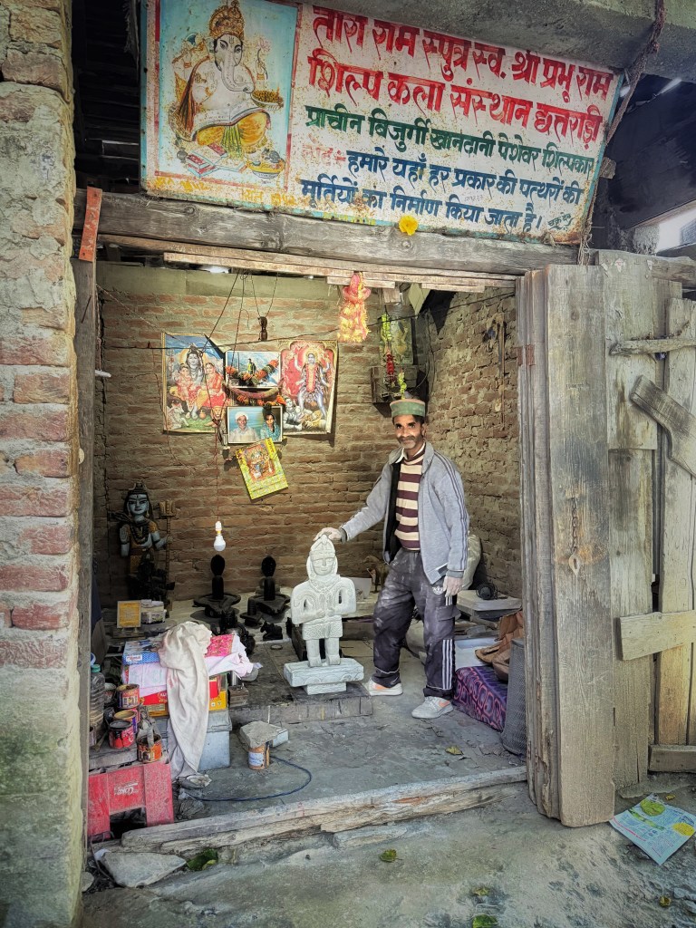 We were accompanied by Avinash Sharma, whose pride in Chhatradi’s heritage is palpable. Guiding us through the village’s hidden hydrologies, he says: “These intricately carved slabs are our pride and lifeline. The community maintains them collectively. We have separate chambers, for drinking water, for washing clothes, for animals. It is a temple and a watering place together. When a newlywed bride comes to the village, she is brought here for her first ritual. And every morning, water collected from the panihars is used for the ritual bath of the deity.”