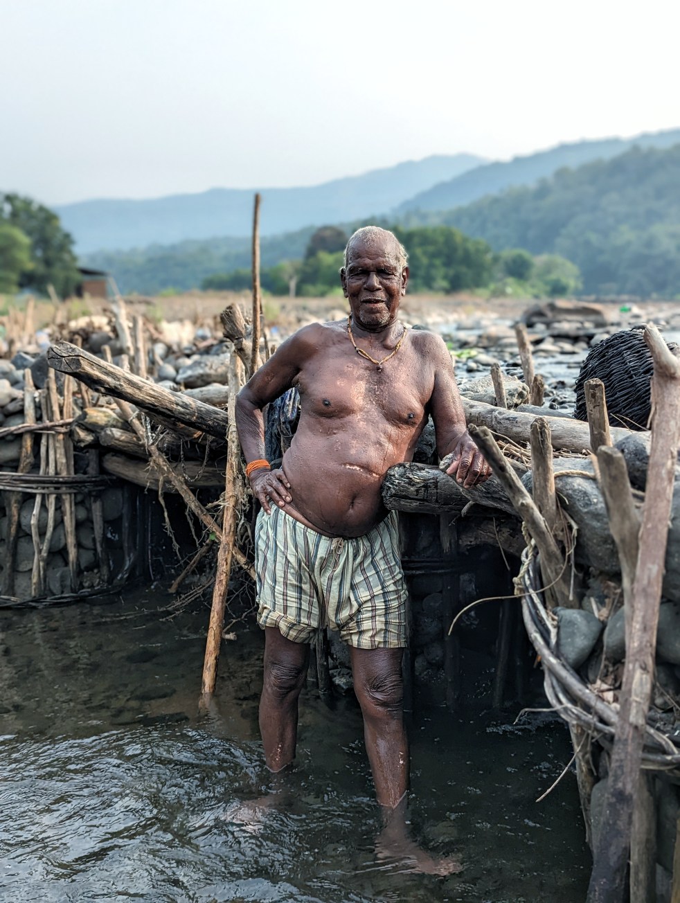 In the leaning golden sun, 65 year old Hari Ganpat Nikam dived like dolphin under a wooden contraption in the Vashishti River. He emerged a whole minute later bearing a beautiful woven basket, his right hand placed firmly on its mouth. As he brought the basket closer, he gradually removed his hand. Inside, tens of small fish and crabs shimmered in the evening light.