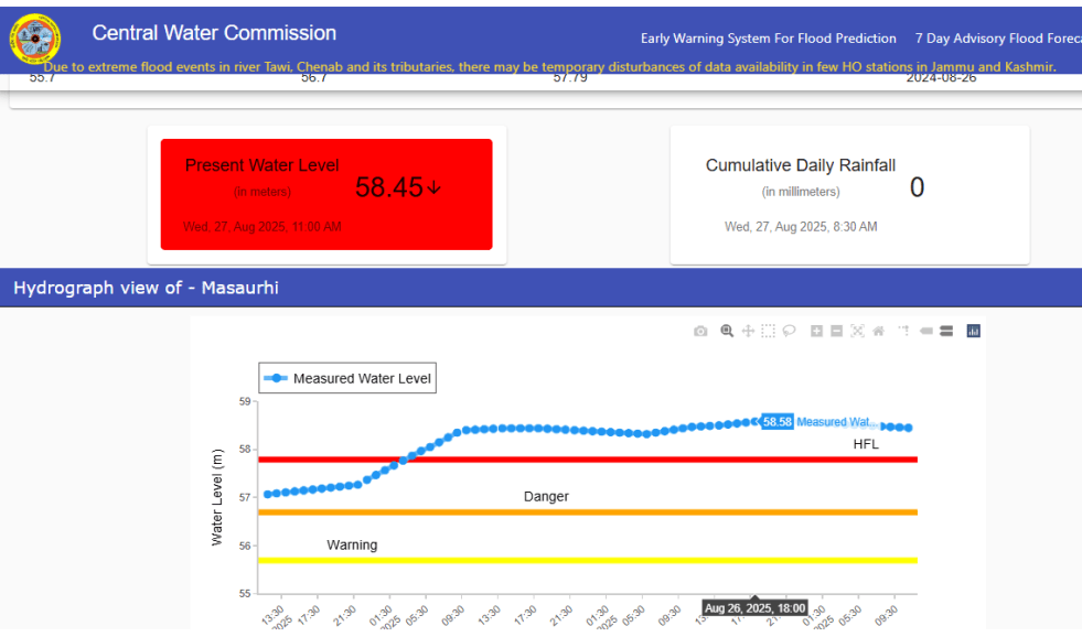We have been able to observe river attaining new Highest Flood Level (HFL) at least at 18 flood monitoring sites of the Central Water Commission (CWC) in the last month of South West Monsoon 2025. These 18 sites are spread over 7 States & UT, including Jammu & Kashmir (6 sites), Maharashtra (4 sites), Uttar Pradesh (3 sites), Haryana (2 sites), Madhya Pradesh, Telangana and Karnataka (1 each site) comprising 5 river basins including Indus (6), Ganga (6), Krishna (3), Tapi (2) and Godavari (1).