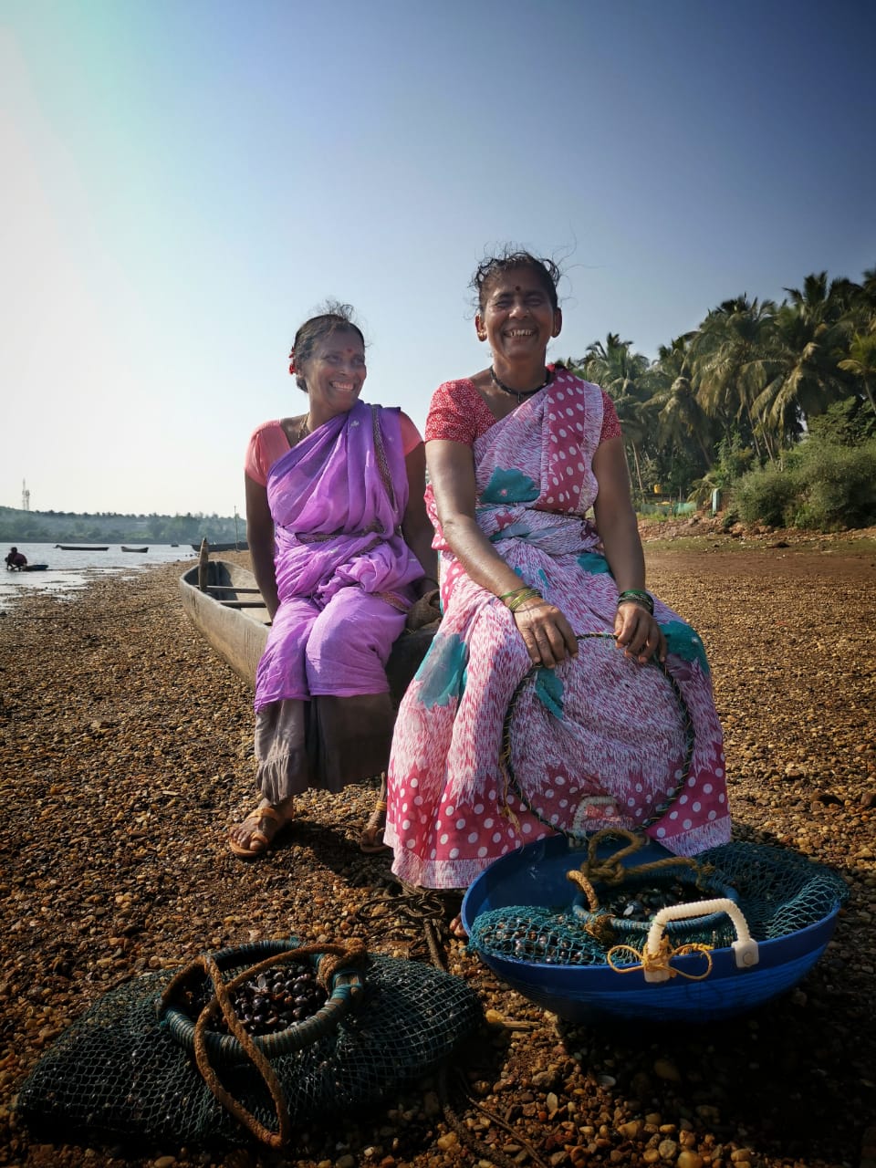 “I don’t know my age. But I know that I have been coming to this river since I was a child everyday to collect bivalves.” Janaki Amma told us while wading waist-deep in the Aghanashini estuary. Janaki Amma is at least 70 years old and has the agility of a ballet dancer as she plunges inside the limpid water one more time, and comes up with a new haul of bivalves in a wicker basket tied to her waist.