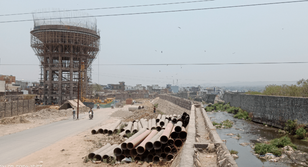 (Feature Image: Underconstruction overhead water tank along Bindal river in Dehradun. B. S. Rawat/SANDRP/May 2024)