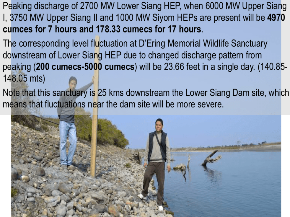 Peaking power projects should be restricted to certain locations like deep mountain gorges, after proper studies. Such projects should not be permitted as rivers enter into floodplains, due to their significant impact on the downstream and also in biodiversity rich river stretches.