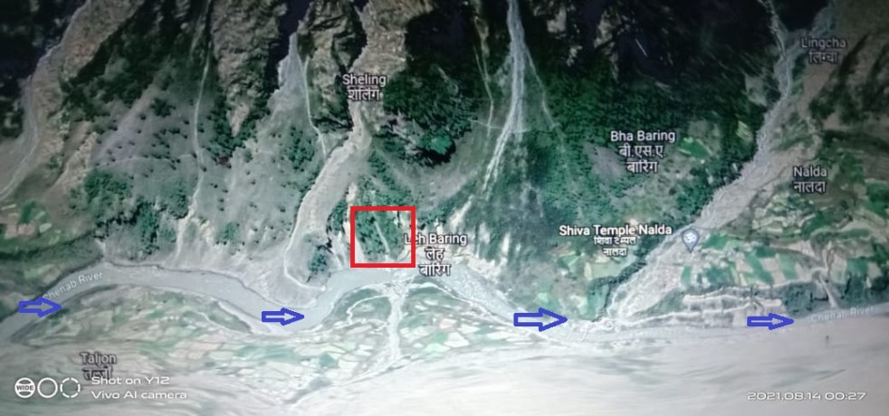 A huge landslide[i] took place near Nalda village under Udaipur tehsil in Lauhl Spiti blocking the Chenab river flows in early hours of August 13, 2021. The exact location seems to be the left bank of Chanab River at Leh Baring site just upstream of Nalda Village Bridge and opposite Jundha village. The Tanda-Kishtwar NH 26 runs along right bank of the river.