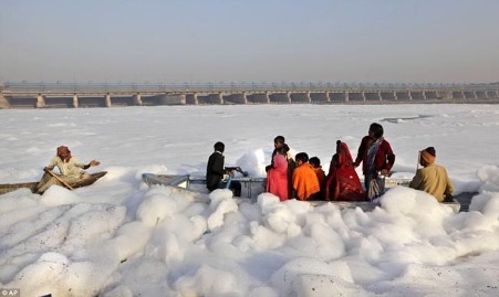 (Feature Image:- A boat is anchored on Yamuna bank as toxic foam float in Delhi, June 5, 2021. PTI Photo/TIE)