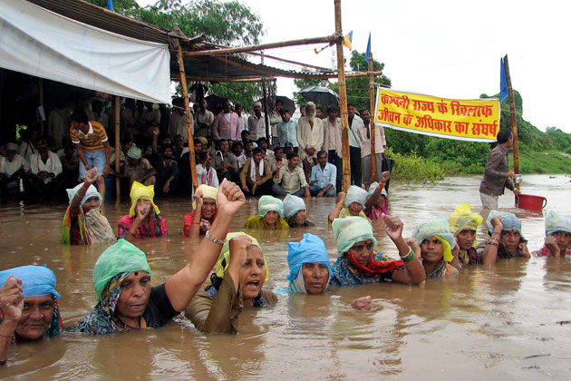 Contrary to all this, the Central Govt and 3 states of MP, Maharashtra and Gujarat have begun a process towards sanctioning completion of the Sardar Sarovar Dam, with closure of the 17 meters high gates. It is a countdown towards impounding waters in the 214 km land stretch where more than 40,000 families are residing till date. There are standing crops and massive plantations; thousands of pakka houses, schools, other public and private services erected; hundreds of temples, tens of mosques (as opposed to three temples claimed by the authorities), adivasi gods and worship places, all of which will be submerged. In protest thousands of people from Narmada valley, to be affected by Sardar Sarovar Project created a Human Chain on the borders of living village communities and on the banks of the river, protesting against any decision to close the dam gates.