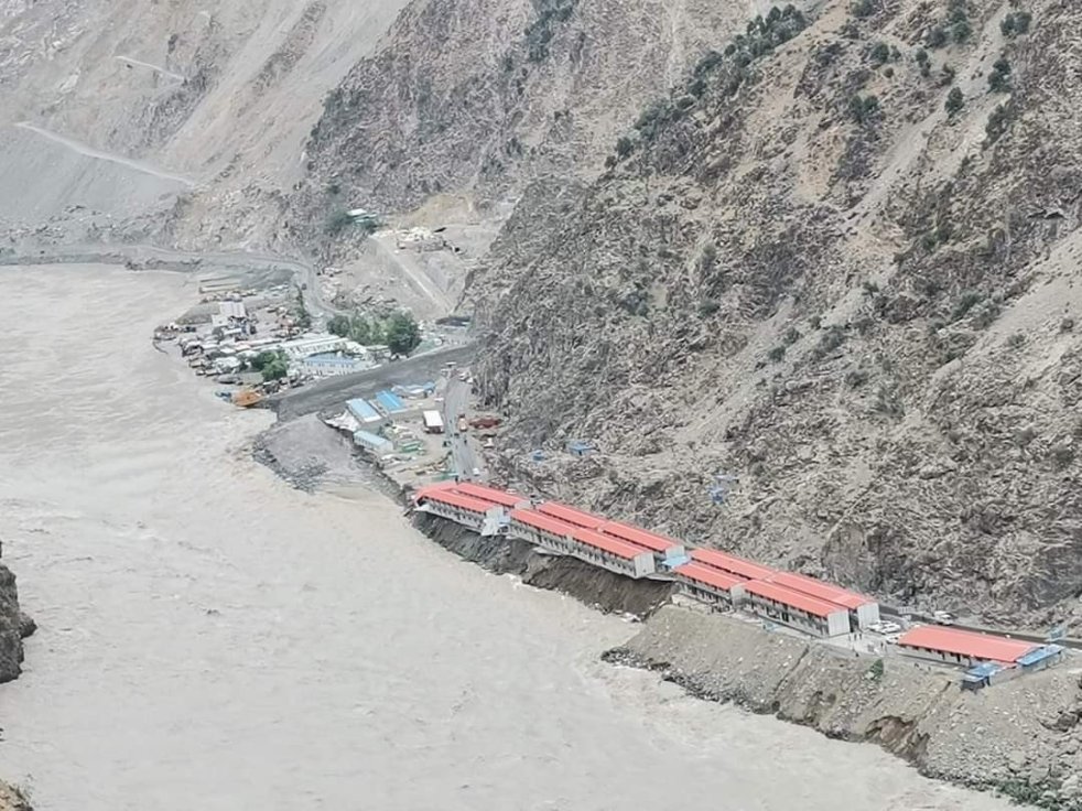 (Feature Image:- The residential quarters established alongside the Ichar Nullah by the Chinese workers of the Dasu hydropower project were swept away along with their machinery, trucks and dumpers in the swollen nullah. Image: Pamir Times, Text:Dawn. Aug. 2022)