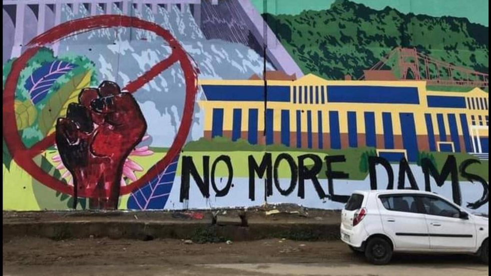(Feature Image: Anti dam graffiti on the wall of the civil secretariat building in Itanagar, Arunachal Pradesh in July 2022. Source: Social Media)