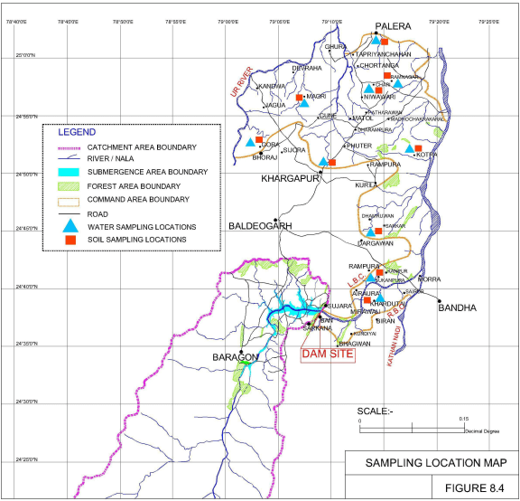 6.Command area coinciding with command area of Ken Betwa Link canal and other such projects? A perusal of the Command area of the Ken Betwa River Link Project (TOR approved by EAC in its 45th meeting in Dec 2010) shows that all the three Tehsils (namely Baldeogarh or Khargapur in Tikamgarh district, Jatara Tehsil in Tikamgarh district and Palera Tehsil in Chhattapur district) are also benefiting from Ken Betwa Link Canal. A look at the map of the command area of Ken Betwa link canal and that of the Bansujara shows that some area are certainly common. The EIA of Bansujara should have pointed this out and also if the proposed command area is to benefit from any other such projects, but it has not done that.