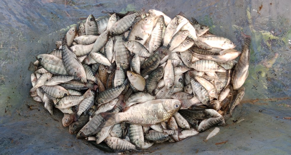 (Feature Image: A fish catch comprised mostly of invasive Tilapia species downstream Wazairabad barrage in Delhi in June 2023. Bhim Singh Rawat/SANDRP)