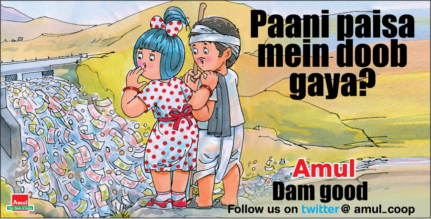 (Feature Image: A decade old Amul caricature on Rs. 70, 000 crore irrigation scam in Maharashtra.)