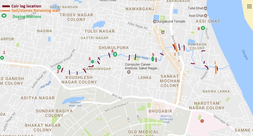 Above: Map showing interventions in Assi River in Varanasi (INTACH)