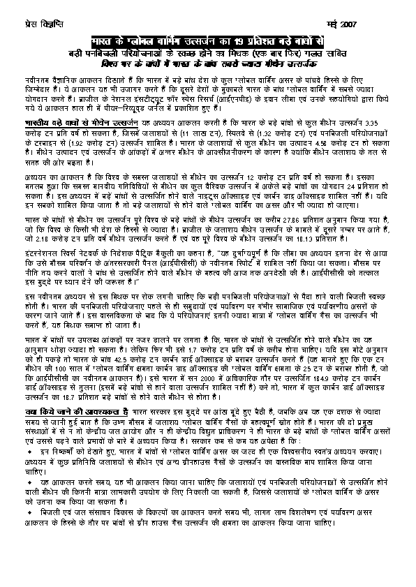 - India Dams Methane Emissions PR (Hindi) 180507 Page 1 , Page 2