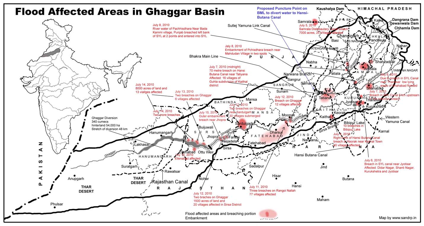 Key Words: Ghaggar, Pachhisdhara, Tangri, Markanda, Sutlej Yamuna Link Canal, SYL, Hansi Butana Canal, HBC, Flood, Breach, Embankment, Bibipur lake. - Press Release: UPA’s disdain for Rivers Aug 2010